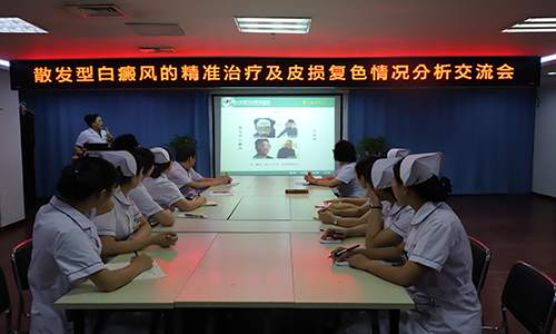 近日,北京国丹白癜风医院白淑芳主任以‘散发型白癜风精准治疗及皮损复色情况分析’为主题开展了交流会,此次大会,北京国丹白癜风医院各科主任、护理人员共同参加。