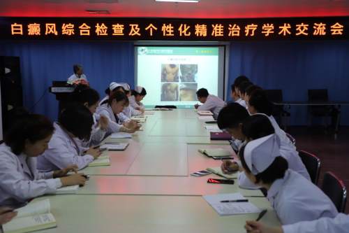 为进一步加强白癜风学科建设,不断提升白癜风临床诊疗水平,更好地为广大白癜风患者健康服务,北京国丹白癜风医院积极开展研讨交流,近日举办了以“白癜风综合检查与个性化精准治疗”为主题的学术交流会。会上,北京国丹白癜风医院王家怀主任与医院各科室人员共同交流、分享了白癜风临床诊疗经验、思路、方法。
